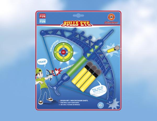 Luk Bulls Eye se třemi měkkými pěnovými šipkami. S terčem na zadní straně obalu. Vhodné do interiéru i exteriéru. Zobrazit celý popis