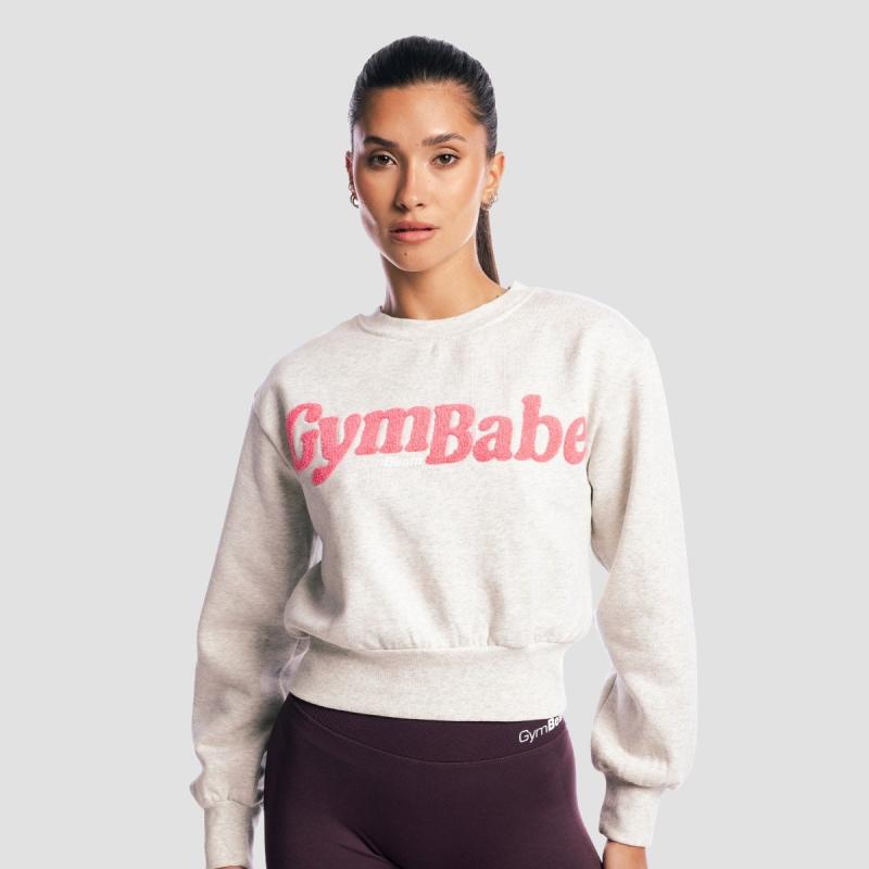 Dámská mikina GymBabe je dokonalou kombinací pohodlí, trendy střihu a hravého designu. Její základ tvoří hřejivý teplákový materiál složený z kombinace 80 % bavlny a 20 % polyesteru. Díky tomuto složení je mikina příjemná k pokožce, prodyšná a ideální na odpočinek i chladnější dny. Obléká se přes hlavu a nemá kapuci, kapsy ani zip, což jí dodává čistý, minimalistický vzhled.
