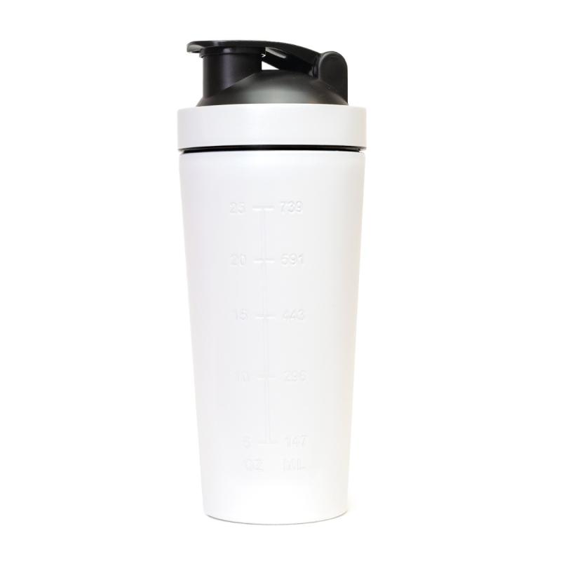 Šejker Steel White je vyrobený z nehrdzavejúcej ocele, napriek tomu je ľahký a praktický. Má objem 750 ml a je uzatvárateľný na závit. Vďaka kvalitnému materiálu je odolnejší a hygienickejší ako plastový šejker. Výborne vám poslúži na precízne rozmiešanie vašich obľúbených doplnkov výživy. Navyše nezadržiava zápach, a preto má dlhšiu životnosť.