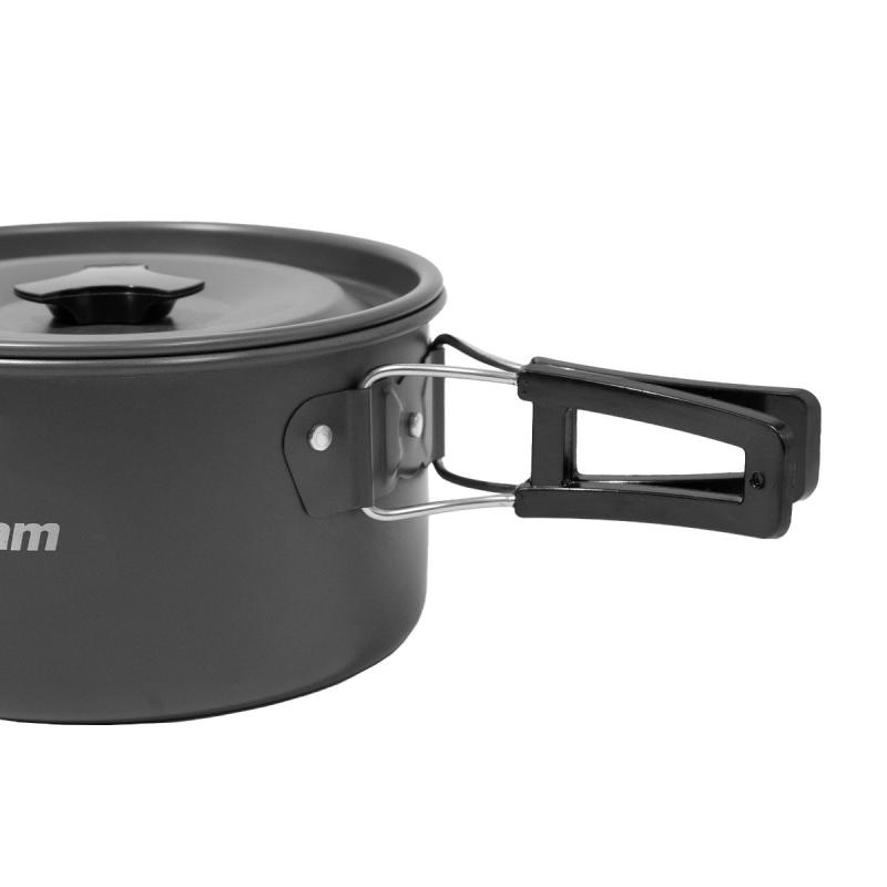Set na vaření Outdoor Cookware je kempingový set na vaření v přírodě, který vám nesmí chybět na treku ani při stanování. Obsahuje odolné nádobí na cesty v podobě pánvičky, konvice s víkem a hrnce s poklicí. Všechny části setu jsou vyrobeny z lehkého a odolného hliníku, který je ideální pro použití v přírodě. Rychle se zahřívá, takže šetří čas i palivo, a zároveň je dostatečně pevný, aby odolal běžným nárazům při přenášení v batohu nebo připnutý karabinou na něm. Díky tomu je tento set skvělým společníkem na každou outdoorovou výpravu. Vy si tak můžete po celém dni připravit výživný pokrm i nápoj, který vás zasytí, dostane do pohody, prohřeje a pomůže vaše momenty v přírodě dotáhnout k dokonalosti.