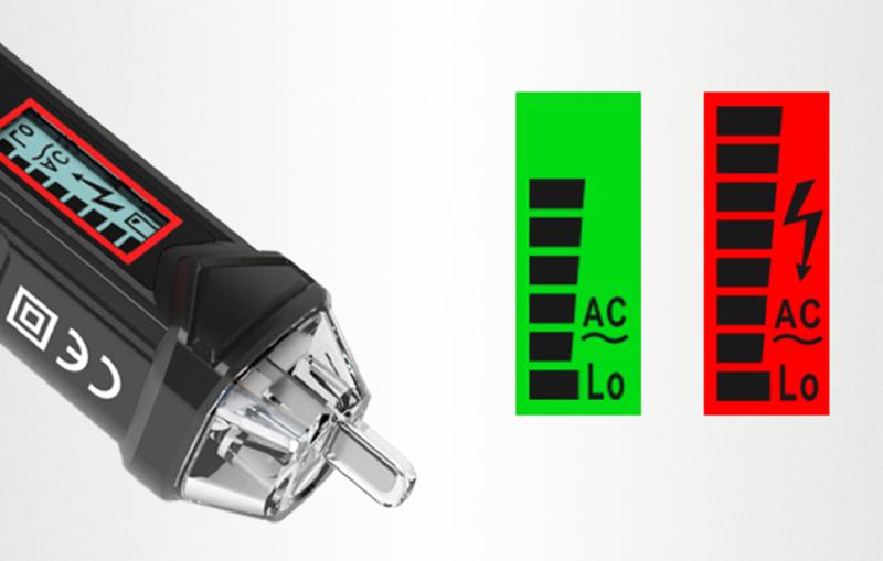 Tento bezkontaktní detektor napětí (NCV) a fáze poskytuje přesné měření a bezpečné použití. Je vybaven LCD displejem a tlačítkem pro nastavení citlivosti - jeho používání je velmi pohodlné. Nabízí kontrolu bodu přerušení i detekci kabelů pod napětím a nulových kabelů a po 5 minutách nečinnosti se automaticky vypne. Vestavěná LED svítilna vám usnadní práci. Přístroj je napájen 2 bateriemi AAA 1,5 V.