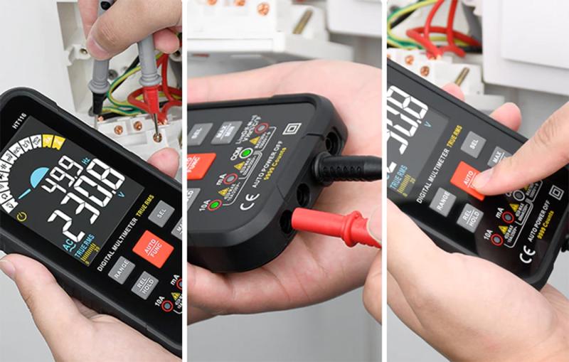 HT116 je inteligentní multimetr, který můžete použít k přesnému měření střídavého a stejnosměrného napětí, odporu, spojitosti, kapacity a dalších hodnot. Velký displej a tlačítka usnadňují ovládání a poskytují snadný přístup k výsledkům měření. Přístroj je navíc vybaven svítilnou, která usnadní práci v tmavých místnostech. K napájení HT116 jsou zapotřebí 3 baterie AAA.