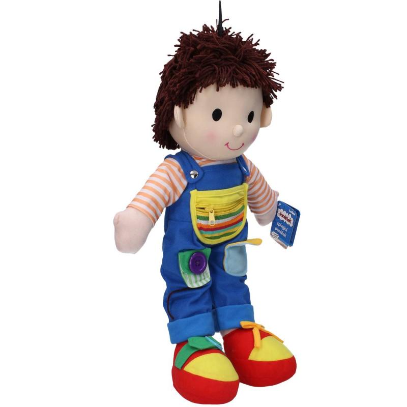 Textilní panáček (panenka) Jonášek zpívající. Velikost 55 cm. Zpěv aktivujete tlačítkem na bříšku. 1 stisk - spustí se písnička, další stisk písničku vypne, další stisk spustí další píseň. 5 písní - Já do lesa nepojedu (0:25), Kolo kolo (0:25), Okolo Hradce (0:30), Komáři se ženili (0:21), Zajíček (0:15).