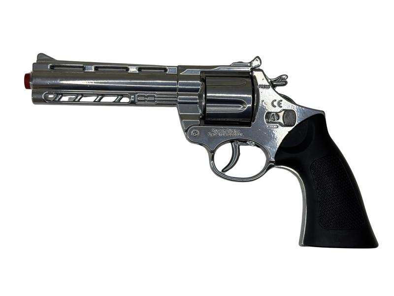 Revolver kovový, 8 ran (pistole na kapslíky, na kapsle) barva stříbrná. Tento propracovaný revolver kovový, patří mezi oblíbené dětské kapslíkové zbraně. S touto parádou budeš hvězdou každého karnevalu.