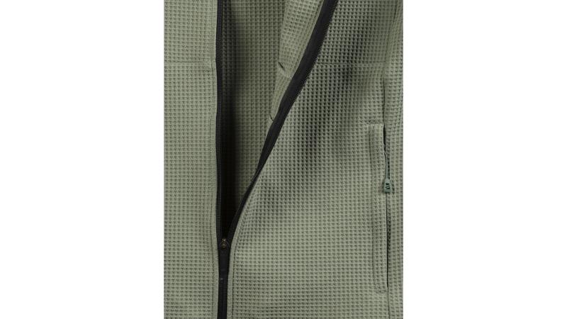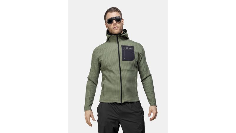 Použitý materiál Active Grid je 3D úplet s hrubším povrchem, který vytváří vzduchové kapsy pro lepší izolaci a zároveň efektivně odvádí pot od pokožky. Díky této struktuře mikina zajišťuje příjemné klima i během intenzivního pohybu.