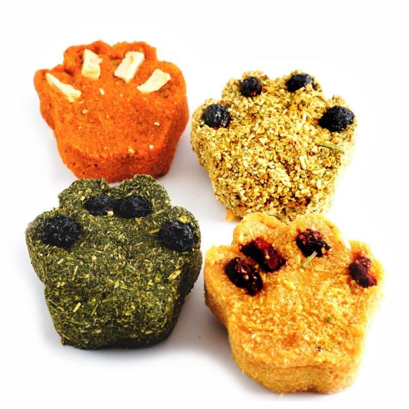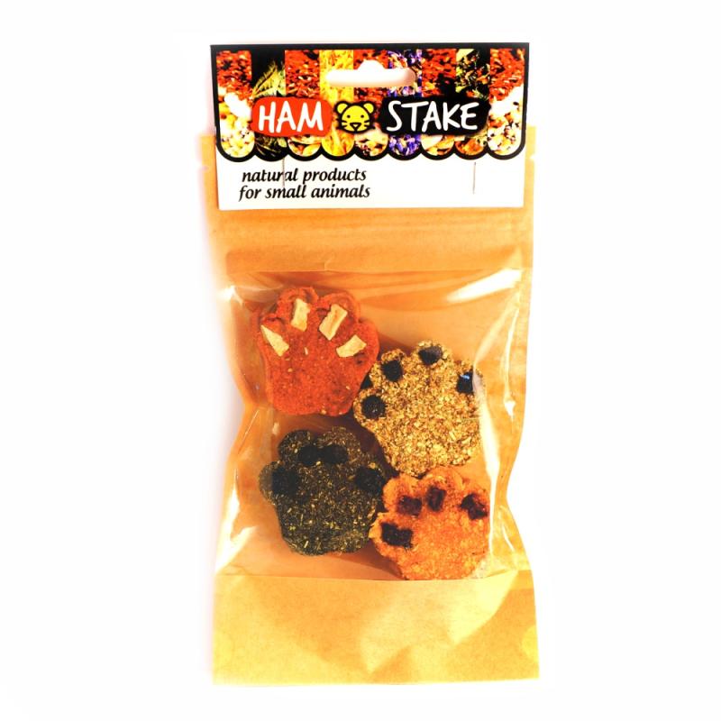 Pamlsky pro hlodavce ve tvaru 4 tlapek.Každý jiný, každý lahodný! Těmto lahůdkám neodolá žádné zvíře. Brokolice, vojtěška, mrkev, špetka červené řepy a pastináku plus trocha černého rybízu a aronie. A po hostině navrch rozemletá bříza k mlsání.