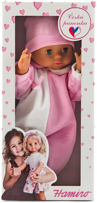 Hamiro panenka miminko 40cm pevné tělíčko růžovo-bílý obleček v krabici