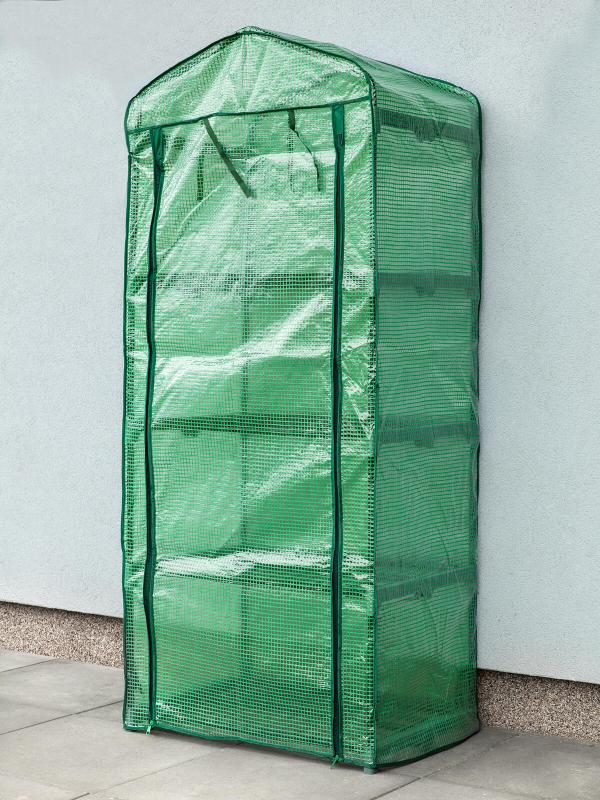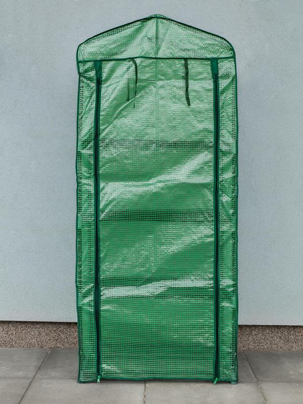 Lehký foliovník s rozměry 69x50x160 cm a 4 policemi usnadní pěstování sadby i urychlí růst zeleniny díky průhledné zelené fólii. Zobrazit celý popis