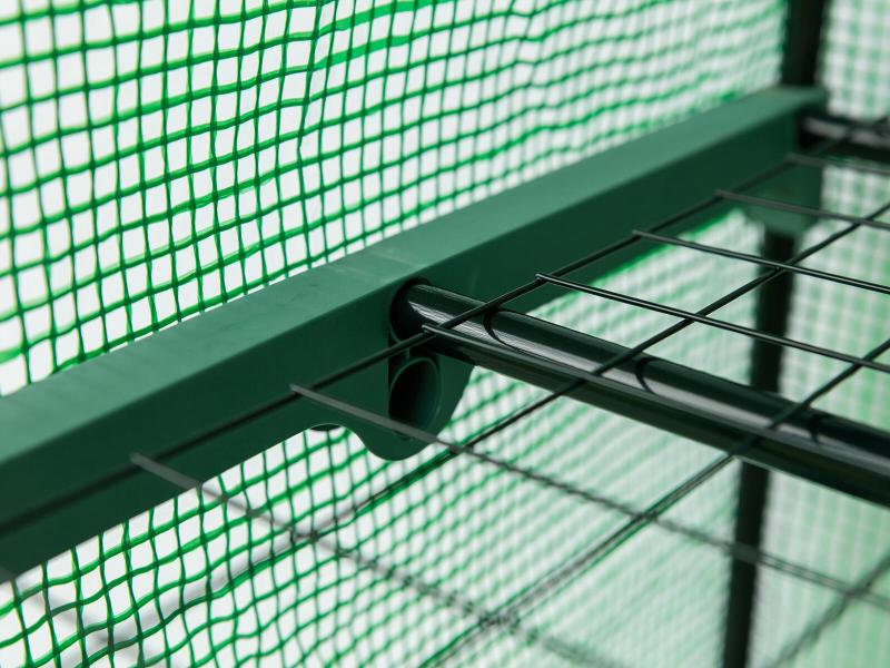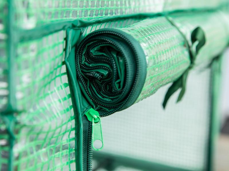 Přední část foliovníku obsahuje vstupní otvor se dvěma zipy, což usnadňuje přístup k rostlinám a zároveň umožňuje snadné větrání podle potřeby.