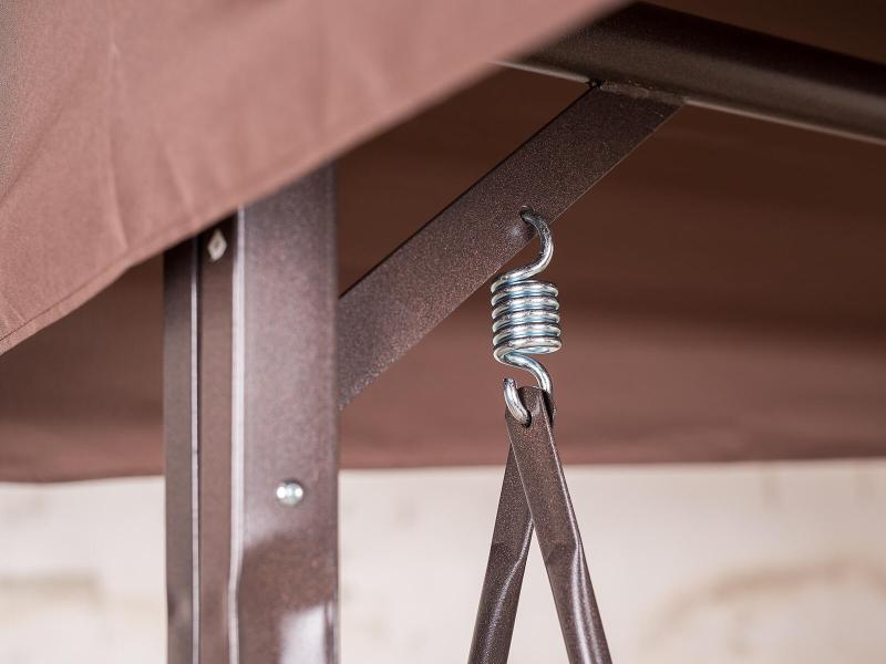 Střecha houpačky je z polyesteru, který chrání před sluncem a mírným deštěm, takže si můžete relaxaci užívat i za proměnlivého počasí. Polstr o rozměrech 144 x 53 x 6 cm je součástí balení a zajišťuje pohodlné sezení.