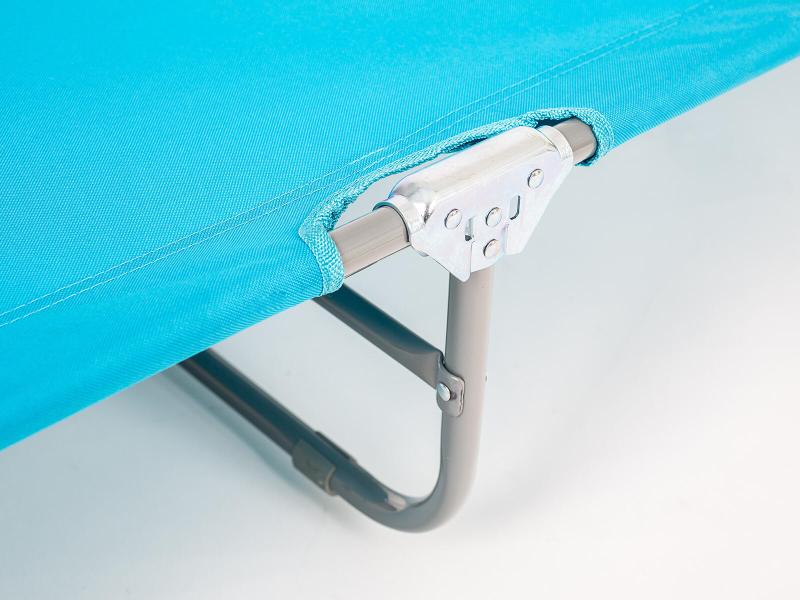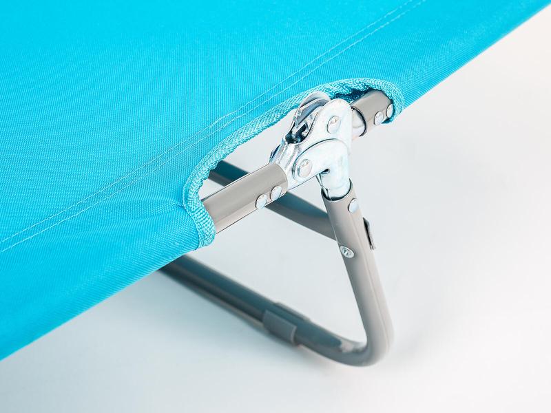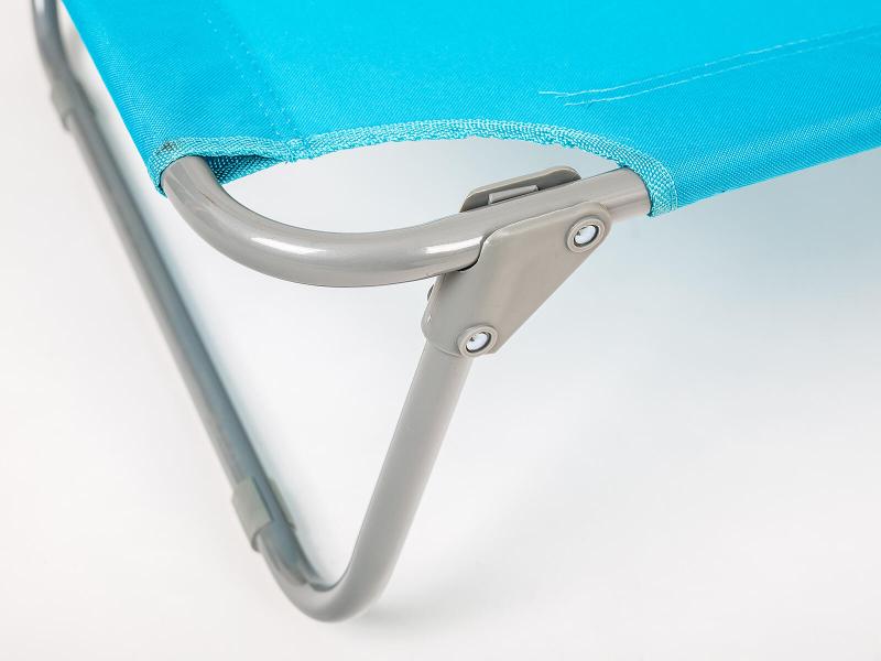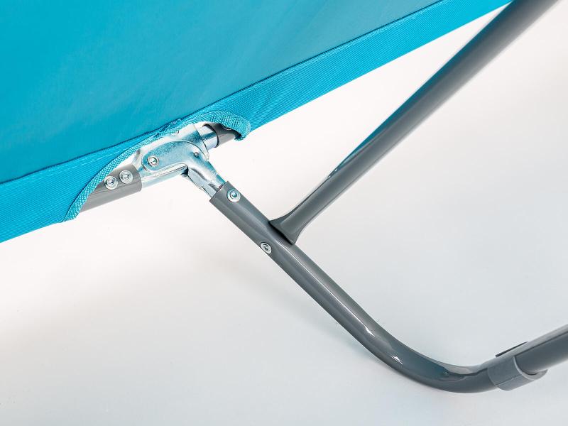 Díky kombinaci kovu a odolné textilie je lehátko snadno přenosné a zároveň dostatečně pevné. Nastavitelný sklon umožňuje volit mezi ležením a polosedem podle aktuální potřeby.