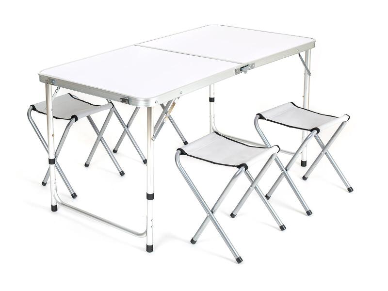 Kampingová sada BILBAO obsahuje stůl s konstrukcí z hliníku a 4 ocelové stoličky.