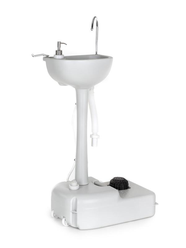 Umývadlo je vybavené zásobníkom na čistú vodu s objemom 17 litrov, ktorý umožňuje dostatočnú zásobu tečúcej vody na umývanie rúk. Súčasťou je aj integrovaný zásobník na tekuté mydlo s objemom 3 litre a praktický háčik na zavesenie uteráka, čo zvyšuje komfort používania.