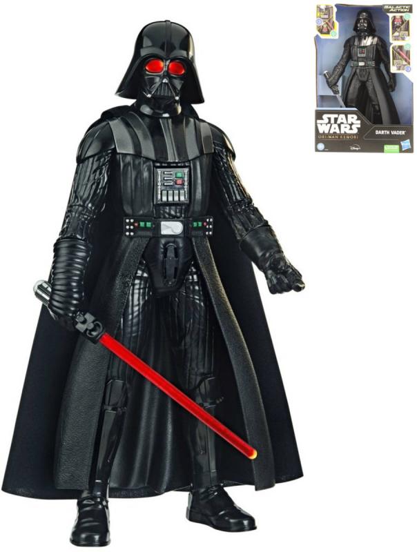 Tahle zbrusu nová elektronická figurka je veliká 30cm a přichází právě včas, aby si mohla střihnout odvetu s Obi-Wanem Kenobim. Těšit se můžete na charakteristické hlášky a zvukové efekty. Prostor pro kreativitu nabízí tři různé režimy – stisknutím tlačítka na opasku aktivujete klasické hlášky a červené pulzování očí, druhým tlačítkem zažehnete světelný meč, abyste mohli svést vlastní imaginární bitvu doprovázenou zvukovými efekty, a třetí tlačítko na hrudi aktivuje duální režim hry. A samozřejmě nesmí chybět ani působivá kápě z jemného materiálu.