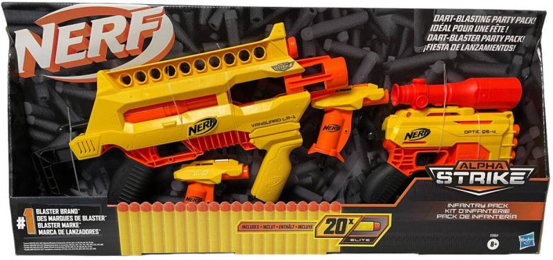 Tato sada Nerf Alpha Strike obsahuje 4 blastery a 20 šipek Nerf Elite pro okamžité boje - chyťte přátele a rodinu a pusťte se do hry Nerf! 24dílný pěchotní balíček obsahuje 4 blastery a 20 oficiálních šipek Nerf Elite.