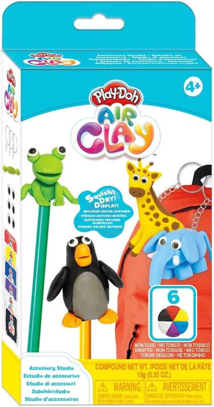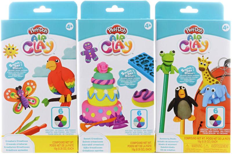 Play-Doh Air Clay Modelína. Startovací sada. Součástí modelína v šesti barvách + doplňky. 3 varianty provedení.Play-Doh Air Clay Modelína - Starter Set je ideální pro začínající umělce a kreativní duše. Tento set nabízí vše potřebné k tomu, aby si děti mohly vyzkoušet tvoření s modelovací hmotou, která schne na vzduchu a umožňuje vytvářet trvanlivé výtvory. Bez potřeby pečení je tento set skvělou volbou pro kreativní zábavu, která vydrží. Děti mohou vytvářet různé modely, které si pak vystaví nebo použijí jako dekorace.