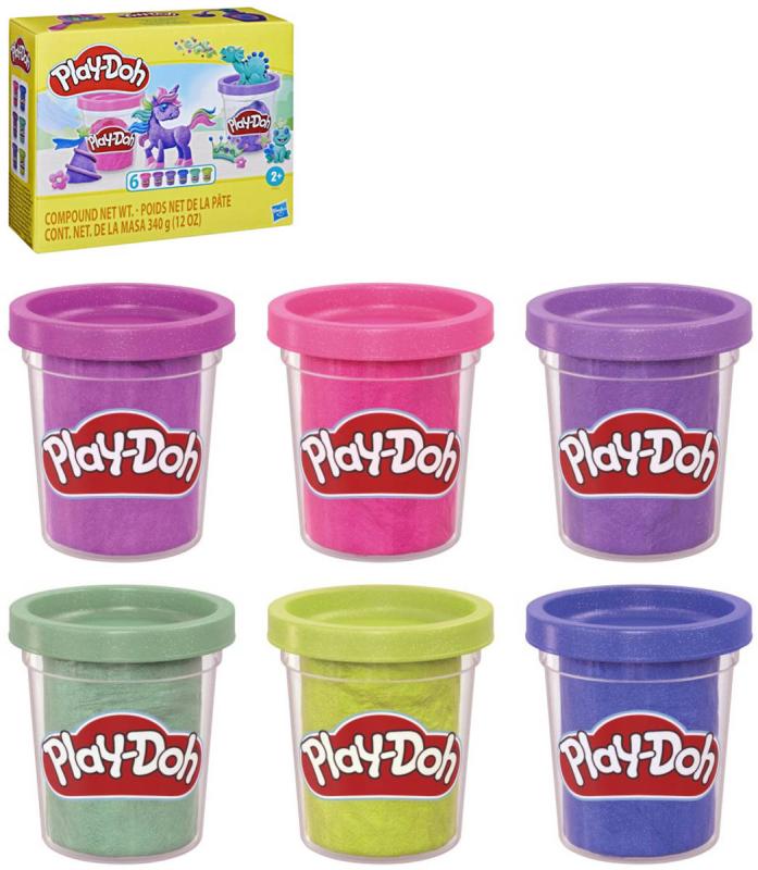 Třpytivá sada obsahuje šest kelímků s hmotou Play Doh, s níž lze vytvářet nádherně třpytivé výtvory. Obsahuje metalickou lesklou pastu v růžové, modré a po dvou odstínech fialové a zelené. Modelína se díky třpytkám kouzelně třpytí. Balení šesti kusů je skvělým doplňkem k ostatním sadám Play-Doh. Dobře poslouží i jako kreativní hračka pro děti, které rády modelují a tvoří. Blýskněte se svou fantazií!