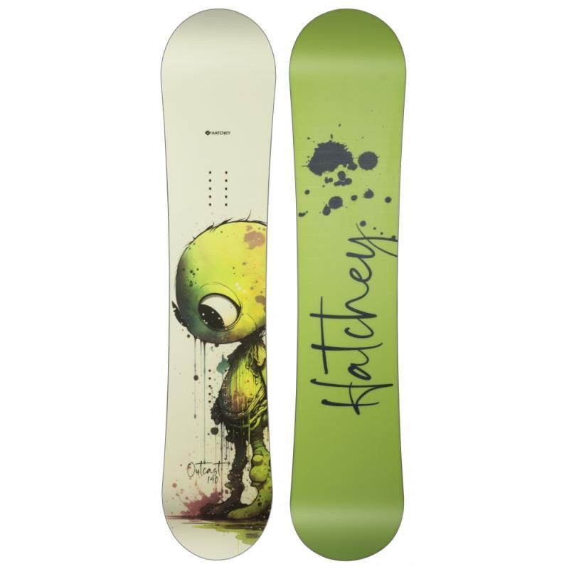 Juniorský freestylový snowboard Hatchey Outcast pro mladé ridery s celodřevěným jádrem a biaxiálním laminátem pro optimální lehkost a výkon. Rocker prohnutí zajišťuje plynulé a hravé jízdní vlastnosti. S touto deskou si užijí neomezenou zábavu na svahu a rozvíjejí svůj snowboardový talent!