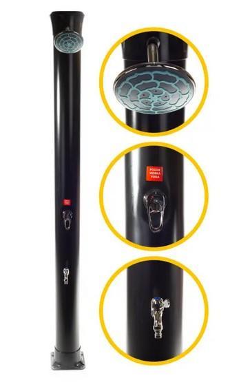 Solárna sprcha Hawaj ALU 40 l je zariadenie, ktoré Vám umožňuje ohrievať vodu v zásobníku za využitia solárneho ohrevu. Tento alternatívny ohrev so sebou neprináša žiadne finančné náklady. Samonosná konštrukcia sprchy, z hliníka, slúži zároveň ako zberný zásobník vody a solárny kolektor, ktorý pôsobením slnečných lúčov vodu ohrieva. Teplotu vody si určíte sami vďaka pákovému kohútiku s reguláciou prívodu teplej/studenej vody.