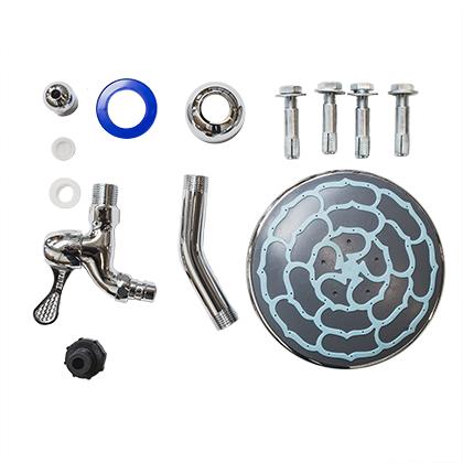 Solárne sprchy sú dodávané s návodom na montáž a všetkým príslušenstvom - samostatný kohútik na oplach nôh, izolačná páska, 4 úchyty (4 otvory + 4 skrutky) do pevného podkladu (betón atď.) a napojenie na hadicu. Jedná sa o rozmerovo priestranný tovar, ktorý je prepravovaný kuriérskou službou.