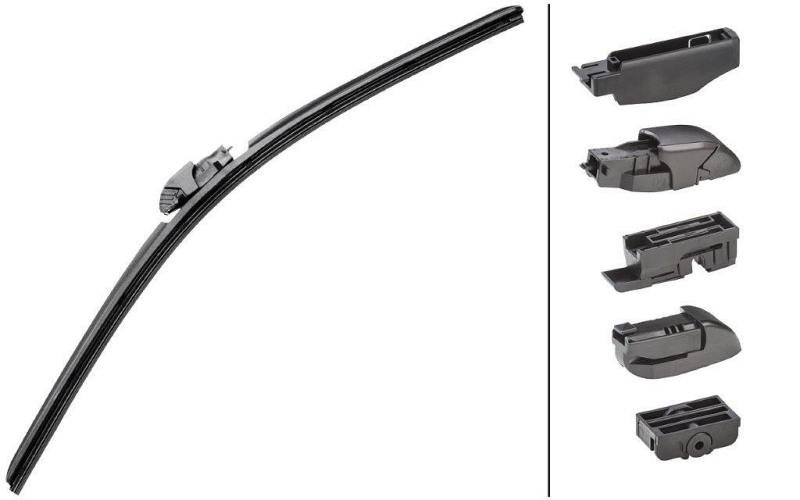 Balení zároveň obsahuje celou řadu adaptérů, díky kterým je možné stěrač použít na všechny běžná zakončení ramínek stěračů.