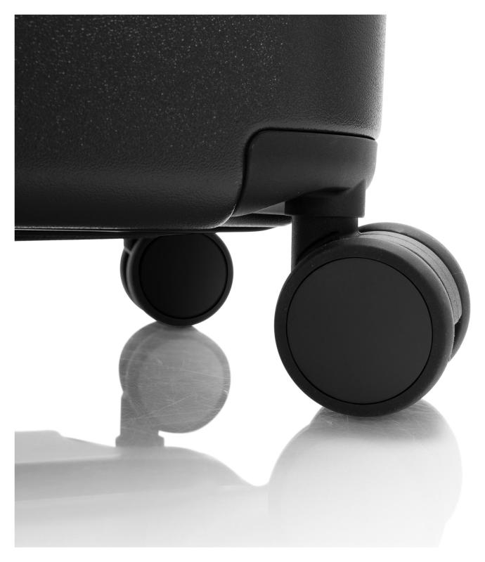 Skořepinový palubní kufr na čtyřech kolečkách s integrovaným TSA zámkem a expandérem vyrobený z odolného polykarbonátu s jemnou texturou na povrchu.4 dvoukolečka otočná o 360°