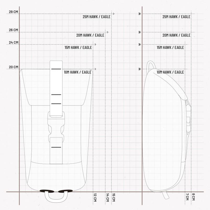 • Házecí pytlík EAGLE - 20m je vybaven pevným, jádrovým lanem o tloušťce 10 mm a délce 20 metrů, které je vyrobeno z polypropylenu a je tedy plovoucí.• Samotný vak je navržen tak, aby byl rychleji po ruce, snadněji se skládal a byl odolnější a spolehlivější.