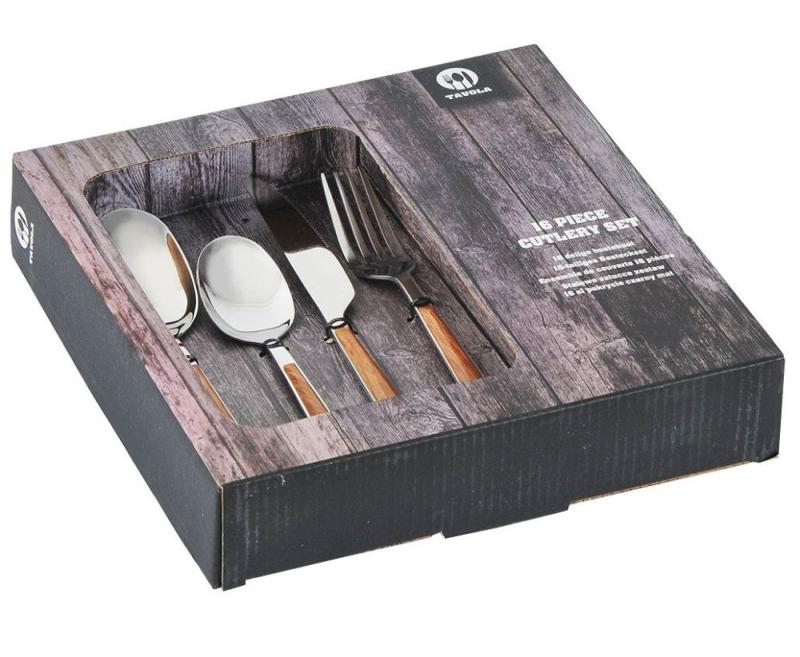 Design je laděný do stříbrné barvy s elegantními dřevěnými prvky, které přidávají teplý a přírodní vzhled. Díky tomu sada nepůsobí stroze, ale zároveň zůstává praktická a funkční. Tento příborový set je vhodný pro ty, kteří hledají kombinaci tradičního materiálu s moderním designem.