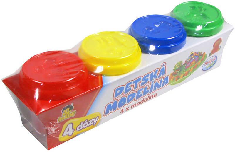 Balení obsahuje 4 ks modelíny (červená, žlutá, modrá, zelená)
