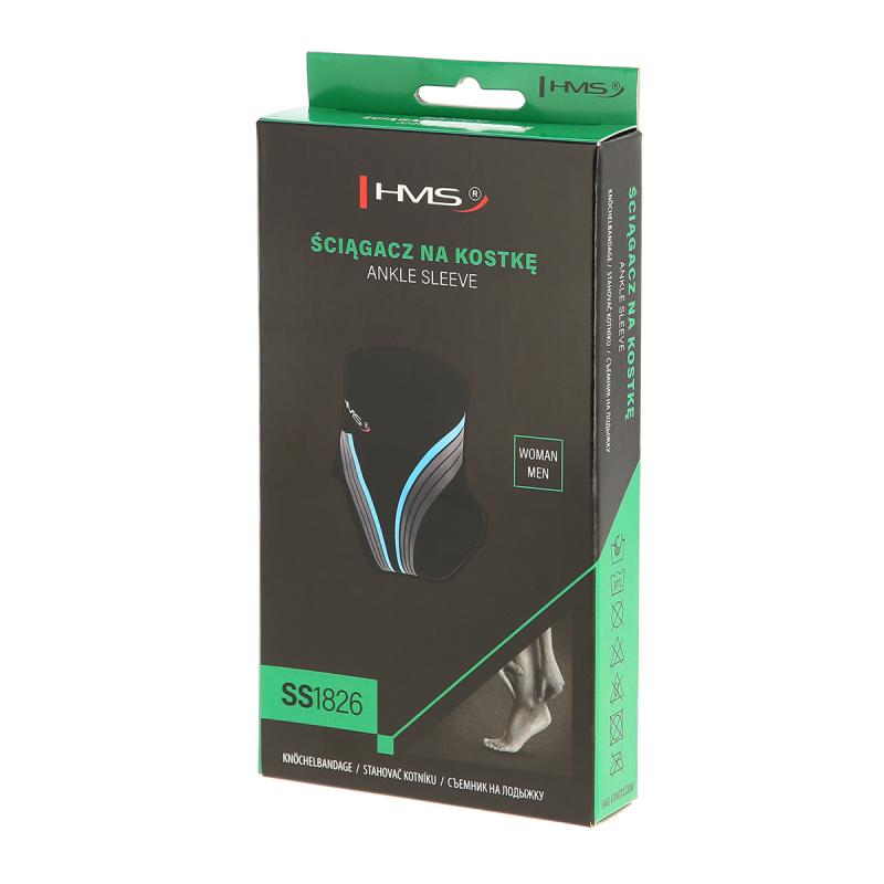 HMS SS1826 je bezšvová bandáž na členok, ktorá má za úlohu spevniť kĺb bez výrazného obmedzenia pohybu. Hlavnou výhodou bezšvového prevedenia je nastavenie kompresie presne podľa aktuálnych potrieb. Nasadenie bandáže je veľmi jednoduché. Chodidlom sa postavíme na stred a postupne ovineme pravú a ľavú stranu okolo členku.