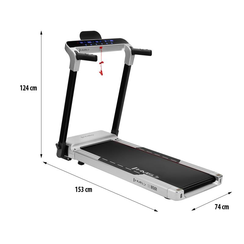 Ste pripravení na revolúciu v domácom tréningu? BE8501i, najnovší tréningový bežecký pás od spoločnosti HMS, je dokonalou kombináciou inovatívnej technológie a pohodlia, ktorá posunie váš tréning na vyššiu úroveň. S ním sa každý beh stane nezabudnuteľným dobrodružstvom a na obmedzenia vášho obytného priestoru prestane záležať.\nModerné technológie pre maximálny komfort\nBE8501i nie je len bežecký trenažér, je to centrum vášho domáceho tréningu. Vďaka vstavanému reproduktoru, pripojeniu k aplikáciám Kinomap a ZWIFT a nabíjaciemu portu USB premení tento bežecký pás váš tréning na interaktívne dobrodružstvo. Navyše je vybavený intuitívnym podsvieteným displejom, ktorý prehľadne zobrazuje všetky dôležité údaje o tréningu, ako je rýchlosť, vzdialenosť, spálené kalórie, dĺžka cvičenia a počet krokov.\nBezpečnosť a užívateľský komfort\nVaša bezpečnosť a pohodlie sú našou najvyššou prioritou. Preto je BE8501i vybavený elektródami pre snímanie srdcového tepu a núdzovou brzdou, ktoré zabezpečujú, že budete mať svoj tréning neustále pod kontrolou. Vďaka nivelačným nožičkám je možné dosiahnuť stabilitu konštrukcie aj na nerovnej podlahe. Prevádzka bežeckého pásu je plynulá a tichá, čo vám umožní cvičiť kedykoľvek počas dňa či noci, bez rušenia ostatných členov domácnosti.\nMaximálna variabilita pri skladovaní\nS ohľadom na domáce prostredie bol trenažér BE8501i navrhnutý tak, aby maximálne využil priestor. Možnosť zloženia a jednoduchého uloženia pod posteľou, v stoji alebo v iných stiesnených priestoroch v kombinácii s transportnými kolieskami uľahčuje organizáciu priestoru a presúvanie zariadenia podľa potreby.\nPrispôsobte si tréning svojim cieľom\nS 12 tréningovými programami a 3 cieľovými programami ponúka BE8501i širokú škálu možností, ako prispôsobiť tréning svojim individuálnym fitness cieľom. Či už sa snažíte zlepšiť kondíciu, zvýšiť vytrvalosť alebo spáliť kalórie, tento bežecký pás vám poskytne správne nástroje k dosiahnutiu požadovaných výsledkov.\nBežecký pás pre vás\nBežecký pás BE8501i od spoločnosti HMS je univerzálnym riešením pre každého, kto chce zlepšiť svoj domáci tréning. Tento bežecký pás, ktorý poskytuje pokročilé technológie, bezpečnosť, pohodlie a flexibilitu pri skladovaní, je dokonalou voľbou pre moderného užívateľa. Či už sú vaše tréningové ciele akékoľvek, bežecký pás BE8501i sa prispôsobí vašim potrebám a ponúkne vám nezabudnuteľný zážitok pri každom behu.\n\nParametre:\n\n- Materiál: oceľ, hliník, PVC, guma\n- Rozmery rozloženého trenažéra:\n\n- Dĺžka: 153 cm\n- Šírka: 74 cm\n- Výška: 124 cm\n- Rozmery zloženého trenažéra:\n\n- Dĺžka: 153 cm\n- Šírka: 74 cm\n- Výška: 33 cm\n- Výkon motora: 1 HP / 750 W\n- Regulácia sklonu: Nie\n- Bežecká plocha: 120 x 42 cm\n- Minimálna rýchlosť: 1 km/h\n- Maximálna rýchlosť: 12 km/h - - Funkcie počítača:\n\n- Čas tréningu\n- Vzdialenosť\n- Rýchlosť\n- Tepová frekvencia\n- Spálené kalórie\n- Tréningové programy: 12 vstavaných, 3 s nastavením cieľa, 1 manuálny\n- Elektródy pre snímanie tepovej frekvencie: Áno\n- Držiak na fľašu: Áno\n- Držiak na mobilné zariadenie: Áno\n- Transportné kolieska: Áno\n- Nivelačné nožičky: Áno\n- Núdzová brzda: Áno\n- Telemetria: Nie\n- Skladacia konštrukcia: Áno\n- USB pre nabíjanie: Áno\n- Vstavaný reproduktor: Áno\n- Bluetooth: Áno\n- Mobilné aplikácie: Áno, ZWIFT, KINOMAP\n- Nosnosť: 120 kg\n- Hmotnosť: 40 kg\n- Napájanie: 220-240V/50-60Hz\nĎalšie informácie:\n\n- Záruka 24 mesiacov\n- Trieda: HC, nie je určené pre komerčné použitie\n- Názvy a ochranné známky sú majetkom príslušných vlastníkov. Tento produkt nie je pridružený k vlastníkom uvedených značiek, nie je nimi sponzorovaný ani nimi autorizovaný. Prístup k službám môže vyžadovať účet a/alebo predplatné.