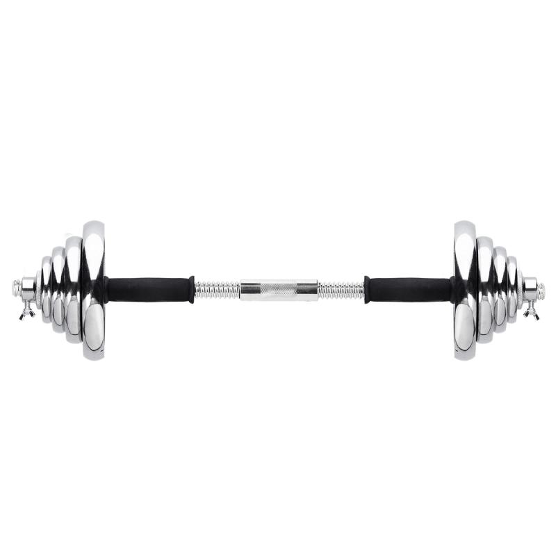 Činky jsou vyrobeny z vysoce kvalitní, chromované oceli, která je zárukou dlouhé životnosti. Kotouče se proti posunutí zajišťují šroubovacími zámky, které jsou dodatečně jištěny šroubem s křídlovou matkou.