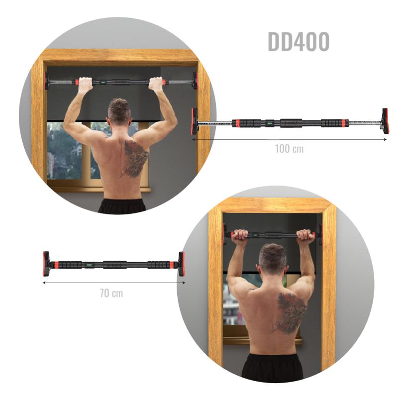 Hrazda DD400 umožňuje vykonávať širokú škálu cvikov. Podľa toho, či je hrazda umiestnená vo výške hlavy, alebo kolien, možno trénovať príťahy, kliky, dipy a tlaky, čo vám umožní meniť tréning a dosiahnuť požadované výsledky. Vďaka nej zvýšite svoju silu, vytrvalosť a zlepšíte celkovú kondíciu.