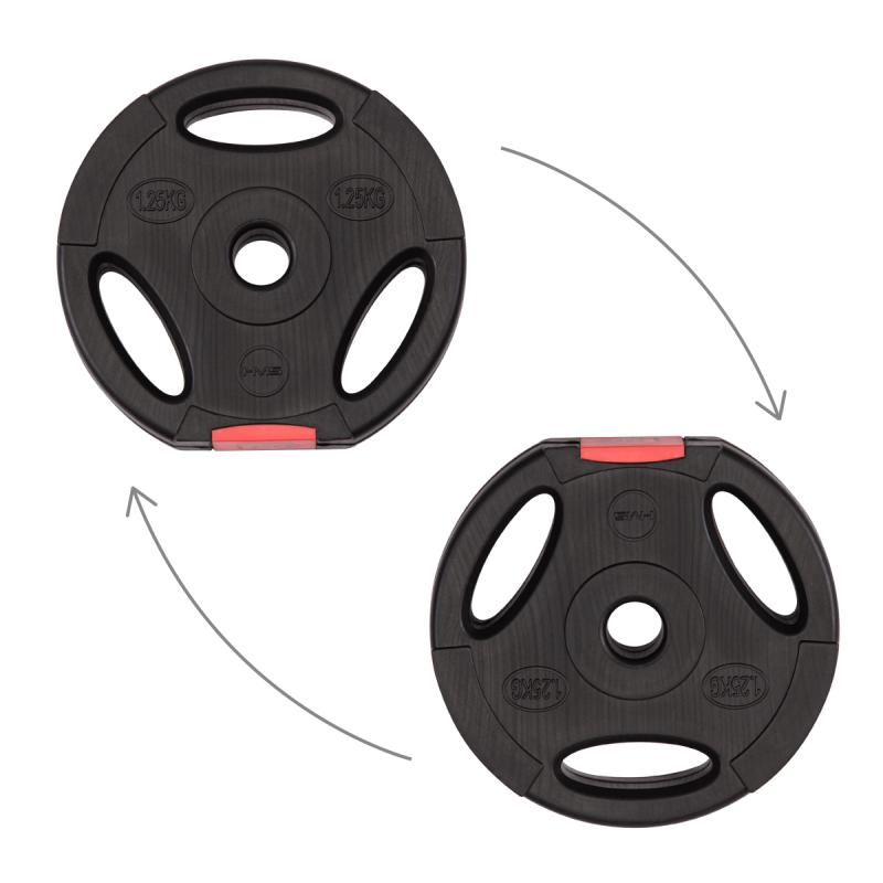 Kotouče jsou vyrobeny z trvdého plastu, který je vyplněn cementem. Trny jednoručních činek jsou opatřeny závitem a závaží je jištěno hvězdicovými maticemi.
