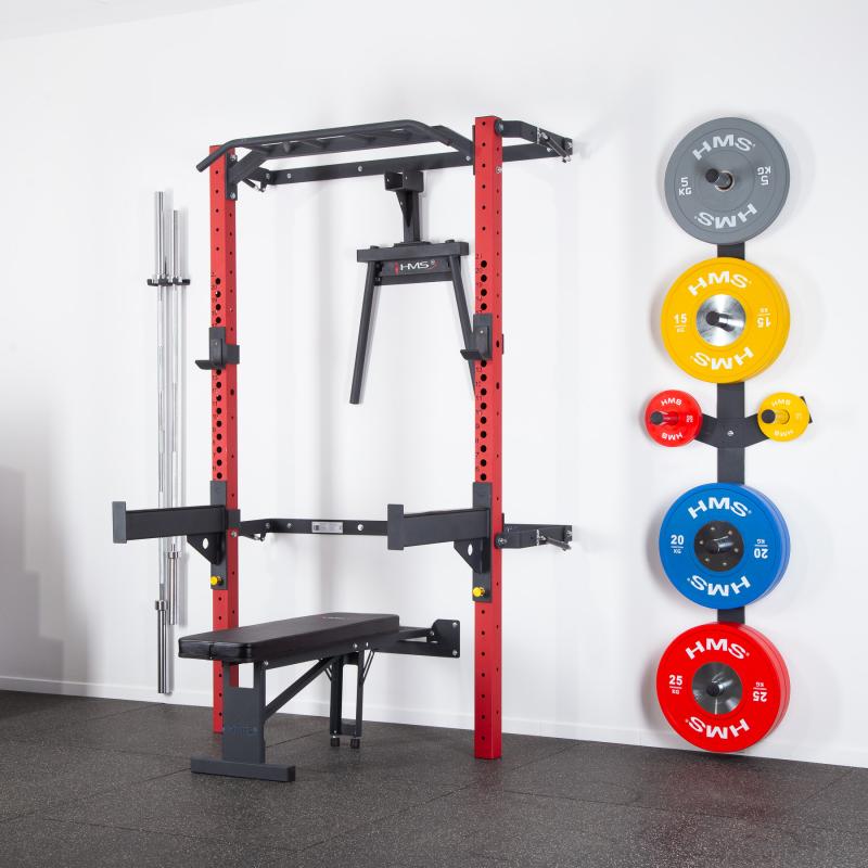 Skládací posilovací stojan - Power Rack KLT22 od společnosti HMS byla navržen tak, aby odpovídal současným trendům na trhu a splňoval očekávání nejnáročnějších zákazníků. Rack v této variantě se prodává s dalším vybavením. Kromě hrazdy, háků na činky a bezpečnostních podpěr zde najdete skládací rovnou lavici, adaptér na dipy, nástěnný stojan na činky a držák na osy. Taková sada rozšíří vaše tréninkové možnosti a poskytne vám nové úložné prostory pro vaše vybavení.
