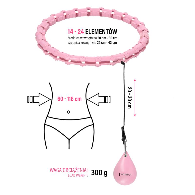 HMS Masážny hula hoop HHW02 so závažím ružová