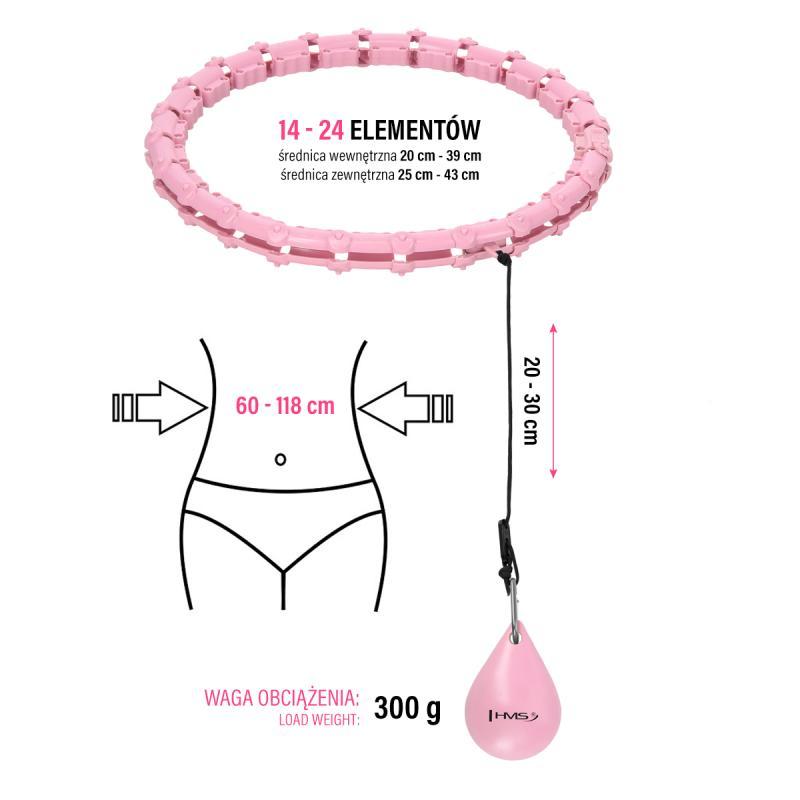 HMS Masážní hula hoop HHW02 se závažím růžová (VÝPRODEJ)