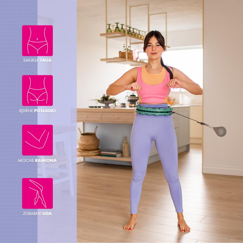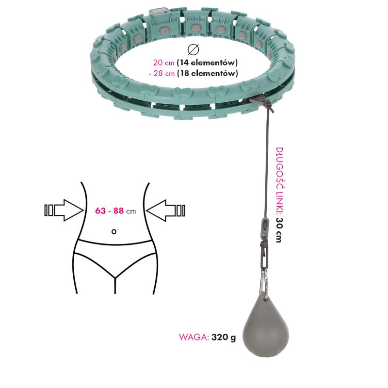 FH03 je hula hop obruč s nastaviteľnou dĺžkou, masážnymi výstupkami a rotujúcim závažím.