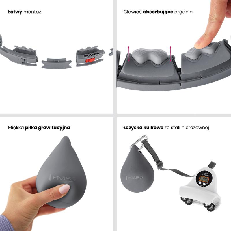 HMS HHW06 je hula hop obruč s nastaviteľnou dĺžkou, masážnymi výstupkami a rotujúcim závažím.