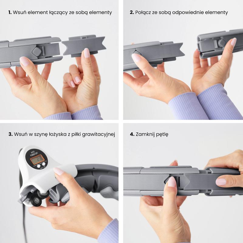 Dĺžka obruče sa nastaví podľa obvodu pásu tak, aby bola dostatočne voľná, ale zároveň aby nespadala cez boky. Po nastavení dĺžky sa obruč uzamkne pomocou spojovacieho dielu, ktorý je osadený páčkou pre ovládanie zámku. Závažie sa následne "vrhne" smerom, do ktorého budeme krútiť bokmi a začneme tréning. Obruč HHW06 je z vnútornej strany opatrená masážnymi výstupkami s pružinami, ktoré tlmia vibrácie od pohybujúcej sa kotvy a zároveň príjemne masírujú oblasť pásu. Intenzitu tréningu ovplyvňuje dĺžka šnúrky a rýchlosť, akou krútíme bokmi.