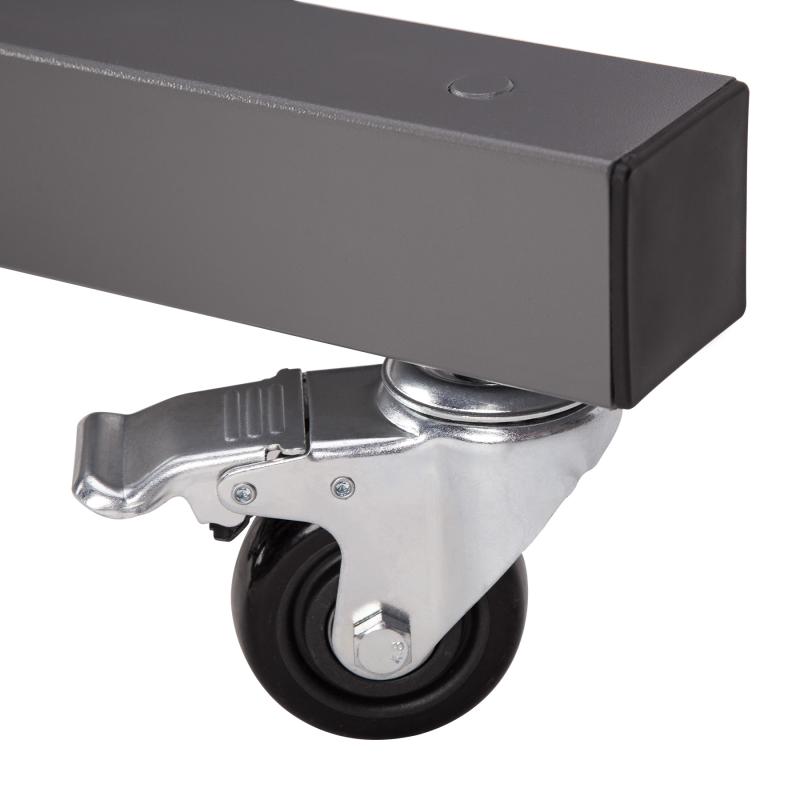 Stojan STR32 je stojan na kolieskach, ktorý vám umožní pohybovať s ním po podlahe podľa ľubovôle. Nemusíte sa obávať o stabilitu ani bezpečnosť, pretože kolieska sú vybavené brzdami, ktoré zabraňujú nekontrolovanému pohybu stojana. Stojan má tiež robustnú konštrukciu z kvalitnej ocele, ktorá vydrží maximálne zaťaženie až 200 kg.