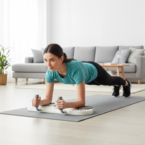 • Plank a brušné svaly – stabilná základňa pre dlane a lakte umožňuje bezpečné vykonávanie statických plankov a izometrických cvikov.