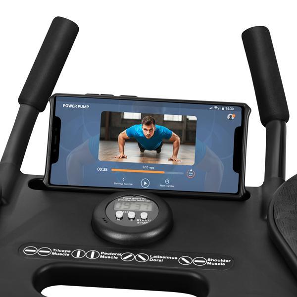 Vstavaný časovač uľahčuje sledovanie intervalov a celkovej dĺžky cvičenia. Držiak na telefón umožňuje pohodlné sledovanie tréningových aplikácií alebo videí bez nutnosti držať zariadenie v ruke.