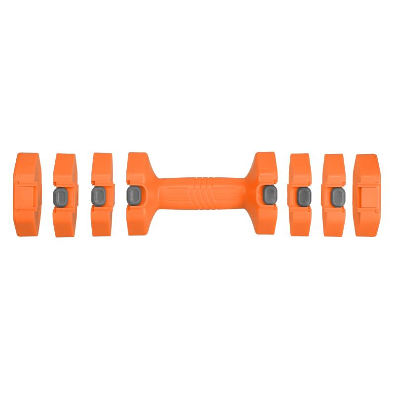 Mechanismus založený na segmentových, galvanizovaných železných vložkách umožňuje jediným stisknutím přidat nebo odebrat blok u obou činek. Změníš hmotnost od 1 do 2,5 kg na kus – bez přídavných kotoučů nebo uzávěrů.