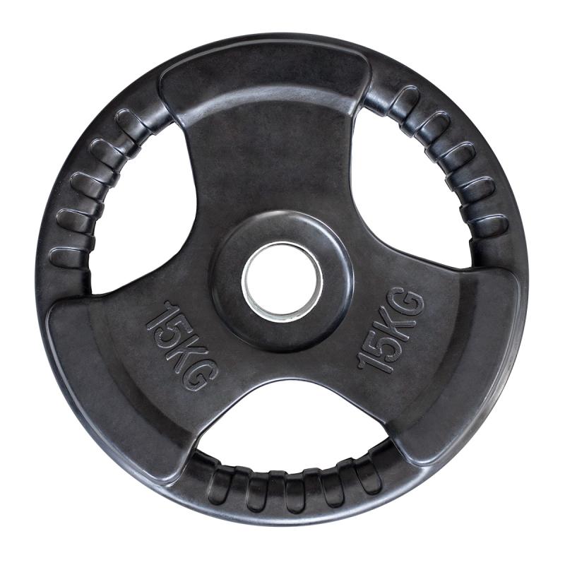 Olympijský, pogumovaný kotouč HMS Tri-grip je známkou kvality a precizního provedení. Tento talíř má otvor o průměru 50 mm, je tedy vhodný pro všechny typy olympijských os. Závaží disponuje třemi držadly pro snadnou manipulaci a pogumovaný povrch prodlužuje jeho životnost.