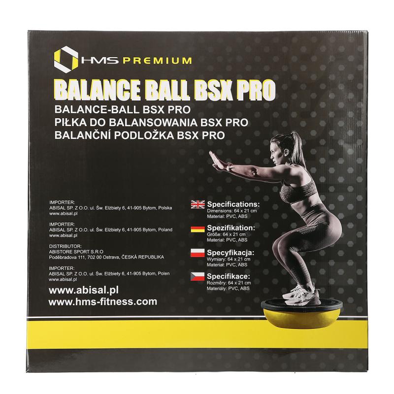Profesionální balanční podložka HMS Premium BSX Pro vypadá trošku jako rozpůlený míč. Používá se dvěma různými způsoby a to buď plochou stranou nahoru nebo touto stranou dolů. Bosu míč je hojně využíván zvláště při balančních cvičeních. Nejprve se podložka používala hlavně při rehabilitacích v nemocnicích, ale dnes už s ní cvičí celá široká veřejnost. Cvičení je vhodné jak pro ženy, tak pro muže. BSX Pro je dobrý v tom, že se zapojí i hluboký stabilizační systém. Pomáhá také v prevenci proti bolesti zad.