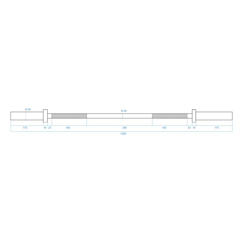 Priemer úchopovej časti je 28 mm a zabezpečuje vysokú odolnosť a pohodlie počas tréningu. Použitý proces chrómovania hriadeľa je zárukou zachovania jeho vzhľadu po dlhú dobu jeho používania a tiež je najlepšou ochranou proti korózii.