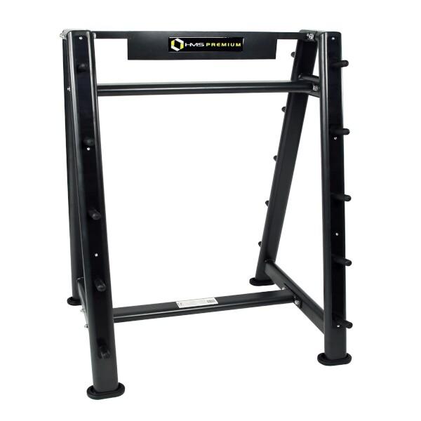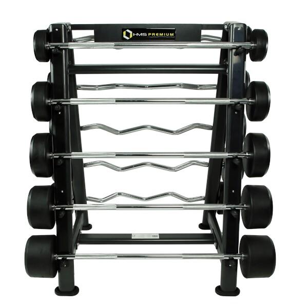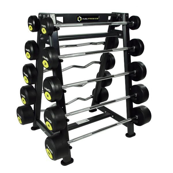 Robustný stojan pojme až 10 pevných činiek, má nosnosť 300 kg a stabilnú konštrukciu z ocele pre bezpečné uloženie náradia.Obojstranný stojan HMS Premium STR05 je navrhnutý na ukladanie pevných činiek. Týchto činiek sa naň zmestí 10. STR05 je vyrobený s ohľadom na bezpečnosť používateľov aj odkladaného náradia.