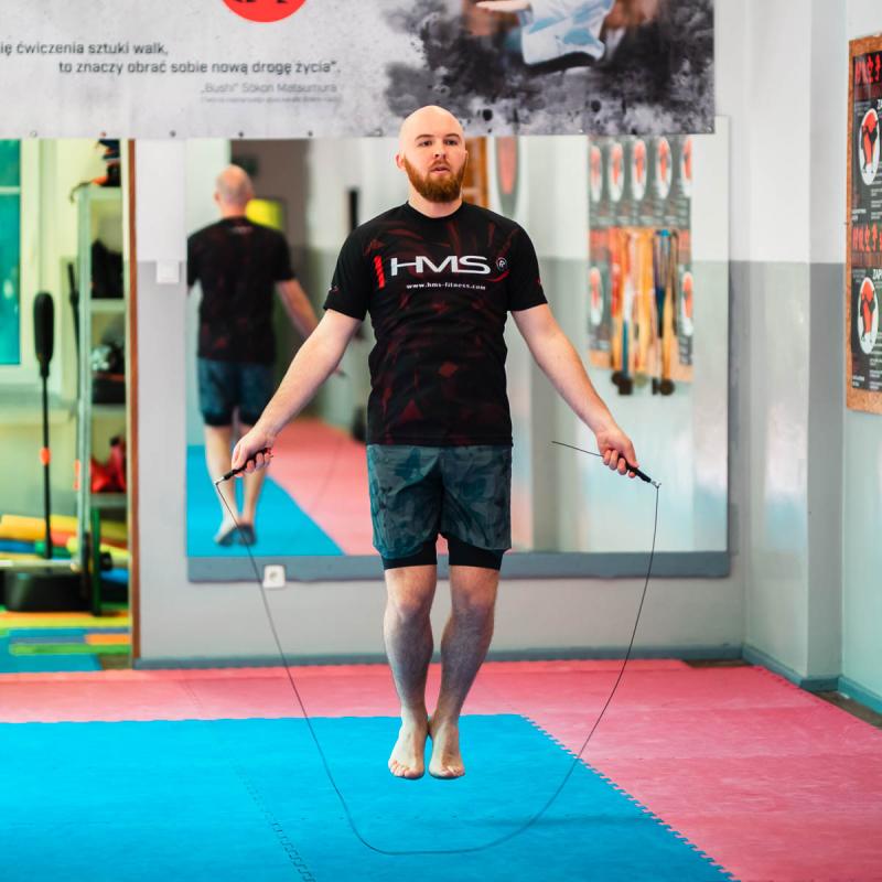 Crossfitové švihadlo HMS SK49 je vybaveno ocelovým lankem, které lze díky šroubům nastavit na libovolnou délku. Rotační hlavice osazené ložisky předcházejí zamotání lanka. zobrazit celý popis
