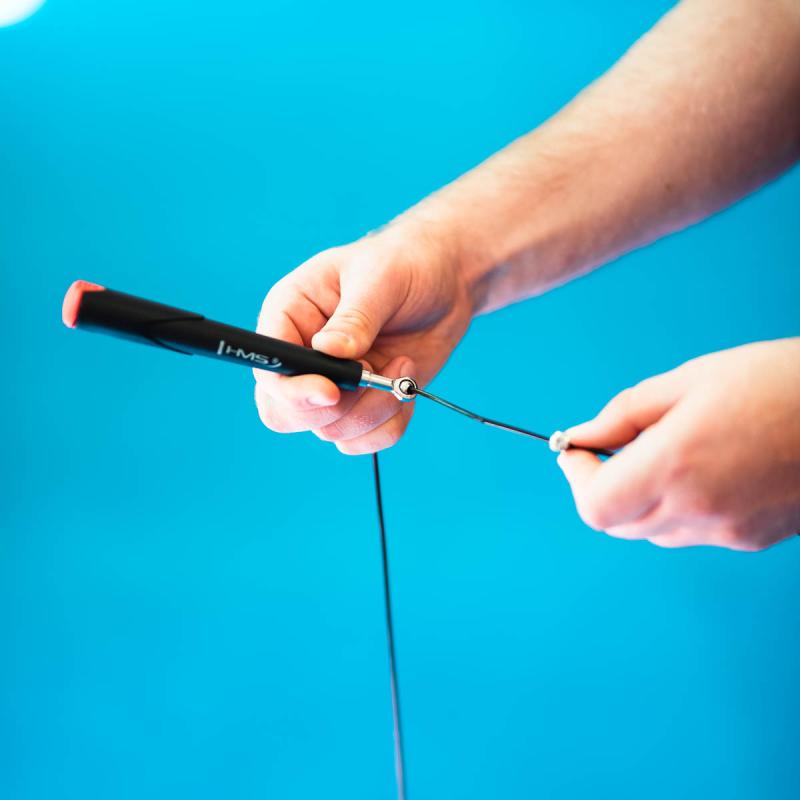 Švihadlo HMS SK49 je vybaveno ocelovým lankem, které lze díky šroubům nastavit na libovolnou délku. Rotační hlavice osazené ložisky předcházejí zamotání lanka.